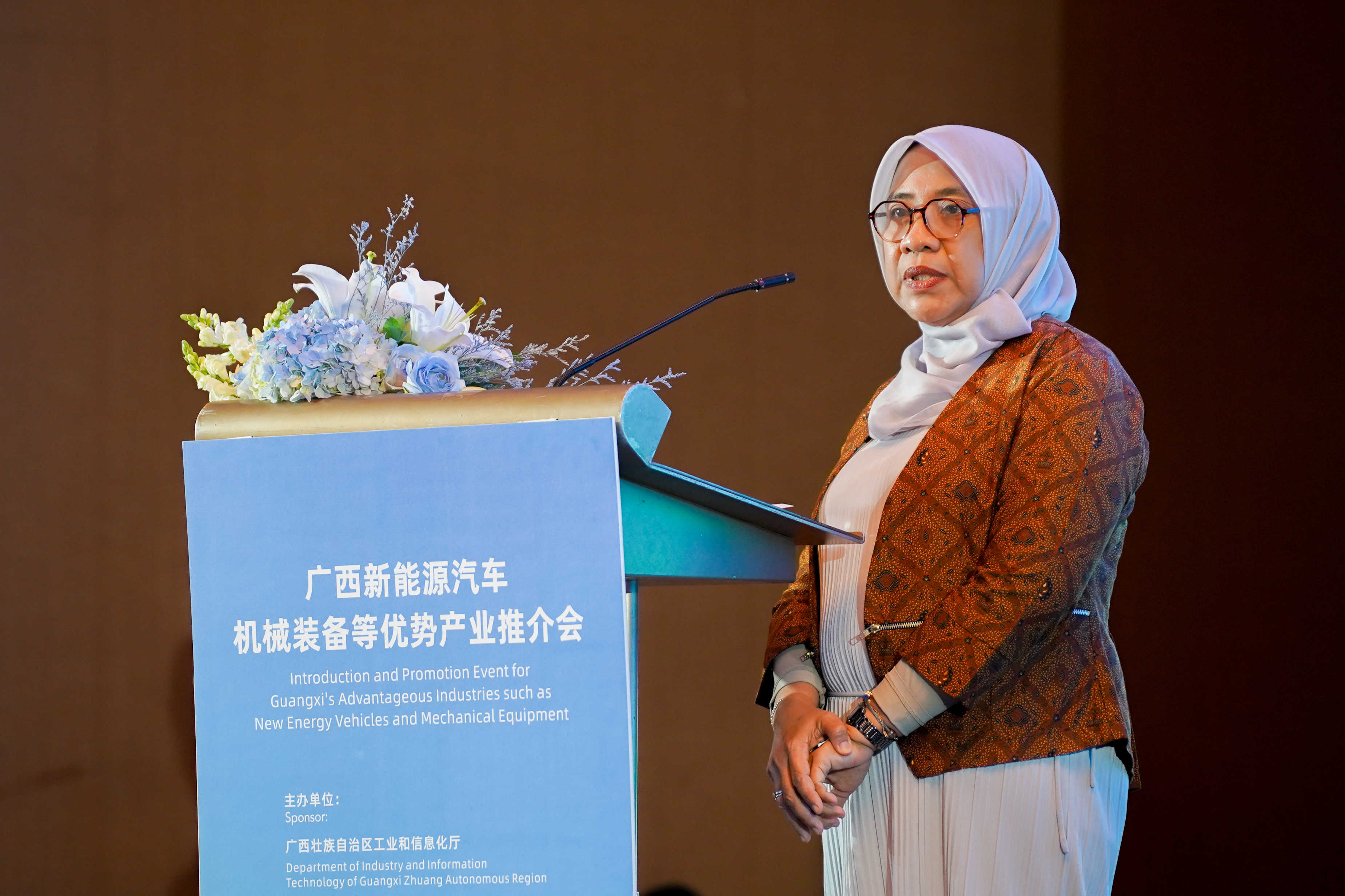印尼投资和下游产业部东亚-南亚-中东和非洲投资促进司、印尼电动汽车行业协会、广西玉柴集团、桂林国际电线电缆集团、广西盛亚科技集团、印尼国轩公司等代表先后做了推介发言。