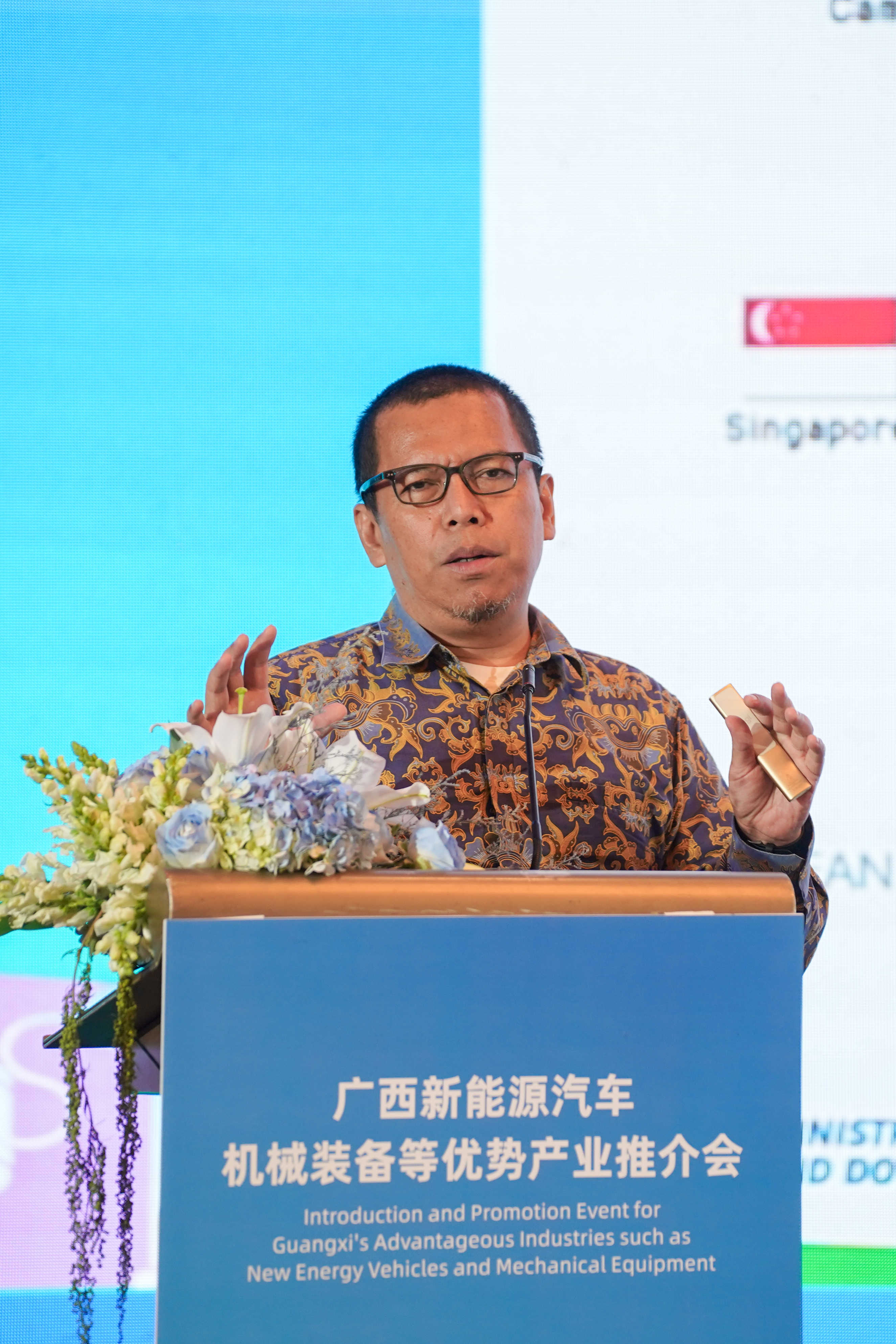 印尼中华总商会副主席商家轩及印度尼西亚基础设施和区域发展协调部副主任Nayo Ramli在推介会上致辞。商家轩对出席本次活动的嘉宾表示热烈欢迎,商家轩指出,印尼矿产资源品类全、储量大,为印尼的经济发展提供了保障,也为印尼制造业和新能源转型奠定了基础。商家轩表示,印尼汽车市场前景广阔,印尼政府出台一系列政策支持新能源产业发展,相信这将为中国的新能源汽车产业提供出海印尼的最佳时机,印尼中华总商会也将积极推动印尼与中国的经贸合作与人文交流,推动共建“一带一路”高质量发展。