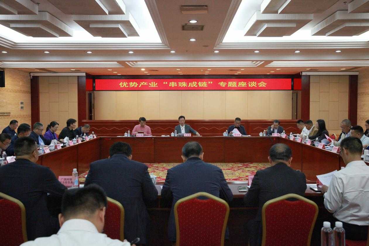 党组书记、厅长王永超主持召开加快推动广西优势产业“串珠成链”专题座谈会,与来自铝、钢铁、有色、汽车、机械、新材料等产业的企业和自治区专家、有关部门面对面交流,听取企业对产业“串珠成链”的意见建议。