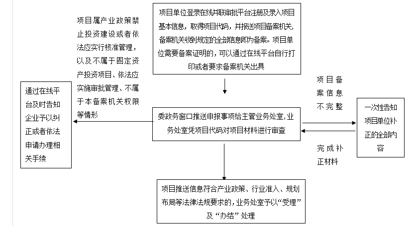 根据《广西壮族自治区人民政府 关于印发广西壮族自治区企业 投资项目核准和备案管理办法的通知》(桂政发〔2018〕35号)第六条 除国务院和自治区人民政府另有规定外,实行备案管理的项目按照属地原则备案。跨设区市项目由自治区人民政府投资主管部门备案,跨县(市、区)项目由项目所在地的设区市人民政府投资主管部门备案。第四十条 实行备案管理的项目,项目单位应当在开工建设前通过在线平台将相关信息告知项目备案机关,依法履行投资项目信息告知义务,并遵循诚信和规范原则。第四十一条 项目备案机关应当制定项目备案基本信息格式文本,具体包括以下内容:(一)项目单位基本情况;(二)项目名称、建设地点、建设规模、建设内容;(三)项目总投资额;(四)项目符合产业政策声明。项目单位应当对备案项目信息的真实性、合法性和完整性负责。